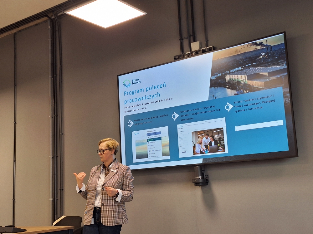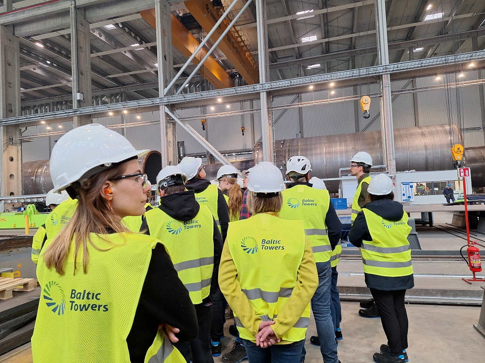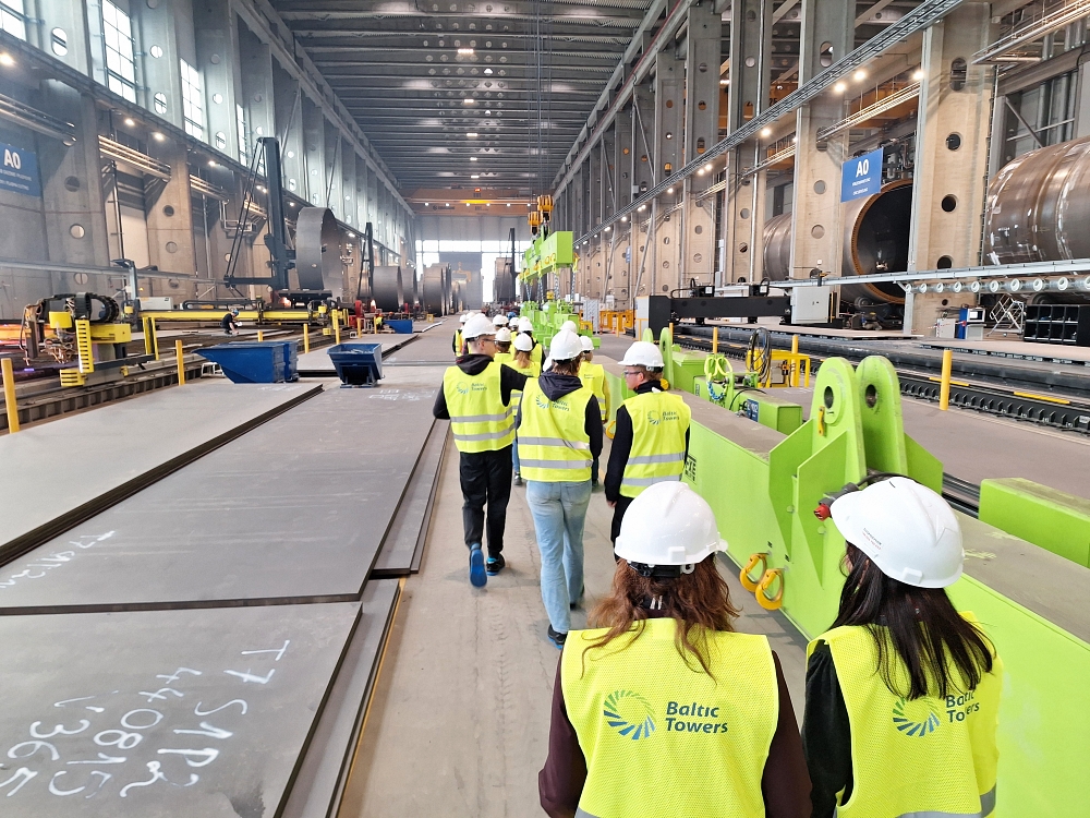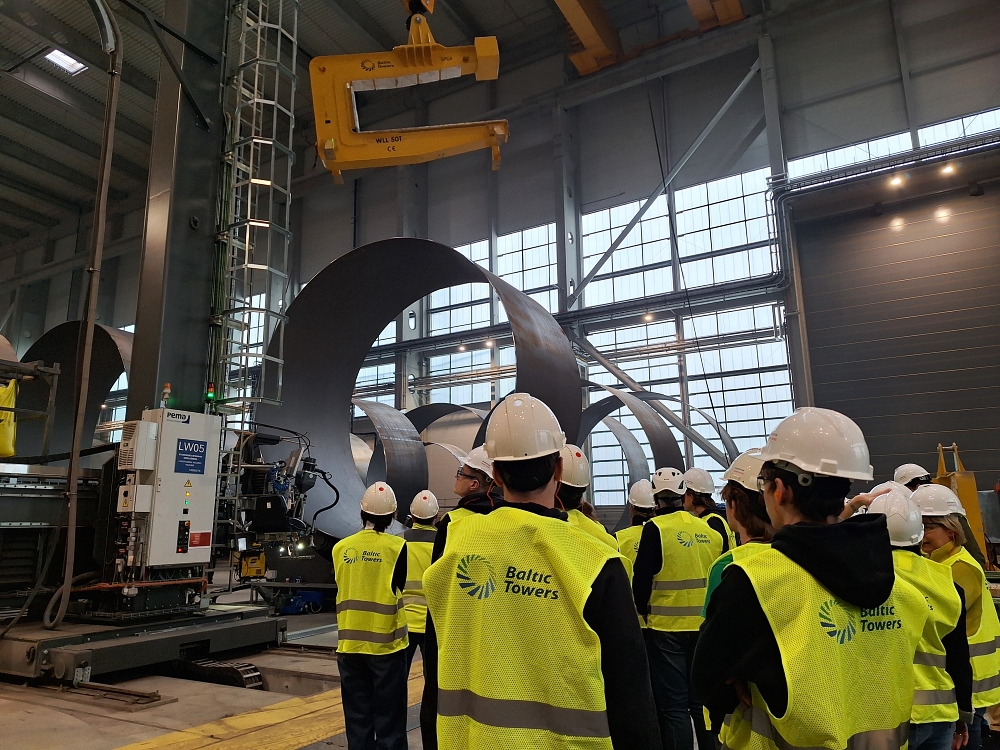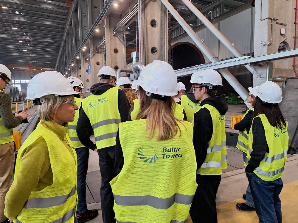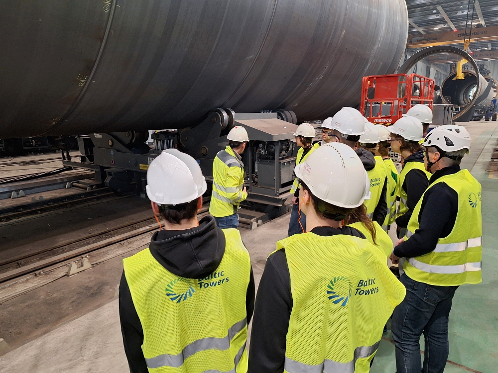 Wizyta studyjna w Baltic Towers pozwoliła uczestnikom zajrzeć za kulisy najnowocześniejszej fabryki wież w Europie, zaprojektowanej i funkcjonującej w modelu Przemysł 4.0. Uczniowie zapoznali się z zakresem i zasadami działalności przedsiębiorstwa, a podczas warsztatu na temat wejścia na rynek pracy zdobyli wiele cennych wskazówek dotyczących kariery w sektorze offshore.