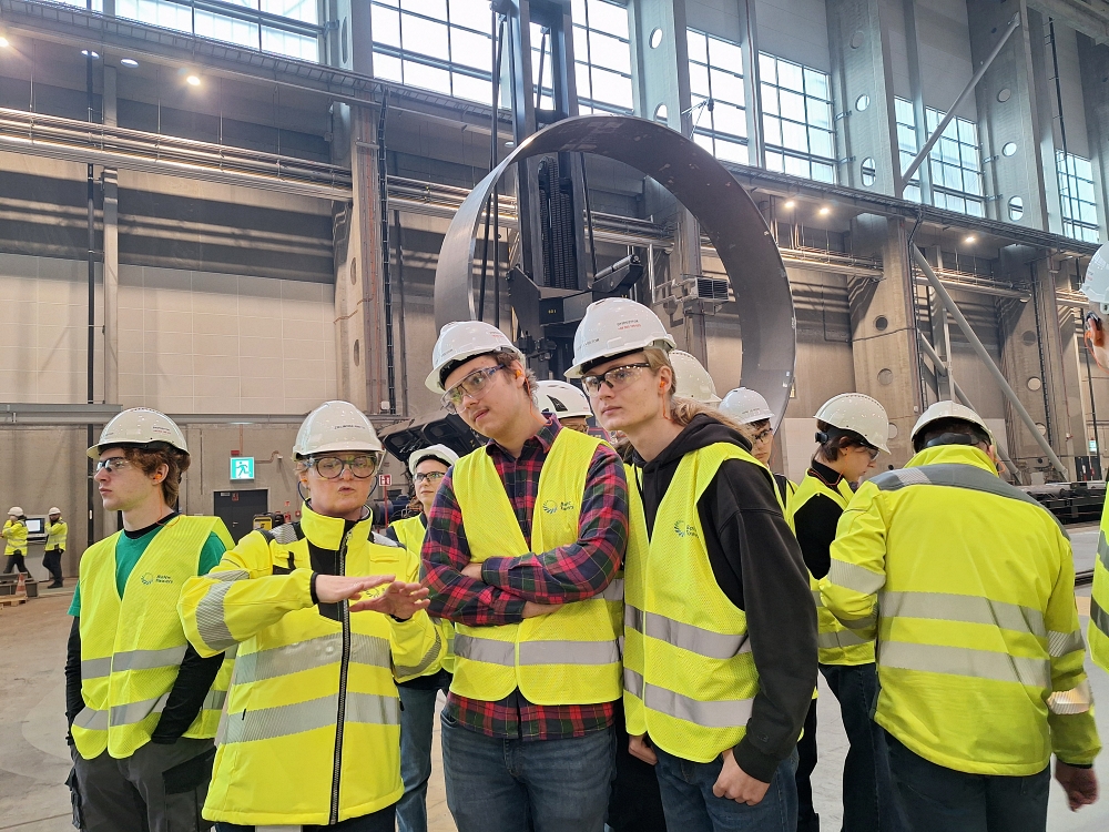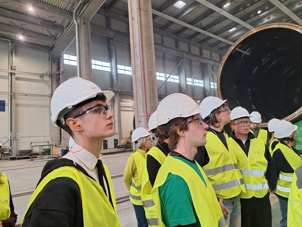 Ogromne wrażenie zrobiła część praktyczna – przejście przez halę produkcyjną i prześledzenie procesu technologicznego – od cięcia blach aż po przygotowanie sekcji wież gotowych do wysyłki do portów instalacyjnych i na farmy wiatrowe. Niecodzienna możliwość zobaczenia zawansowanej produkcji oraz rozmowy z przedstawicielami firmy pozwoliły uczniom poczuć specyfikę pracy w branży i odkryć realne możliwości rozwoju w sektorze offshore wind.