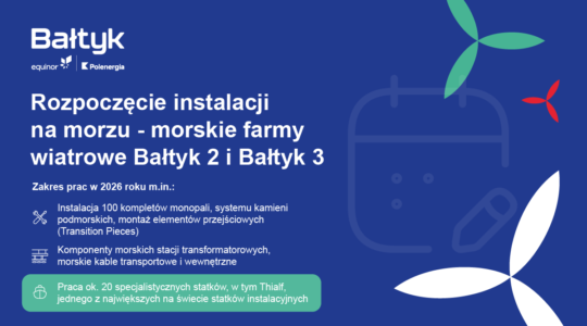 Trwa budowa morskich farm wiatrowych. Equinor i Polenergia zapraszają na kolejne spotkanie informacyjne w Ustce