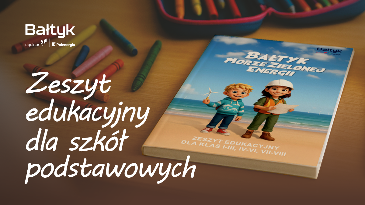 Zeszyt edukacyjny „Bałtyk. Morze zielonej energii” to kontynuacja projektu realizowanego przez Equinor i Grupę Polenergia w latach 2023 i 2024. Spółki przeprowadziły warsztaty o morskich farmach wiatrowych w polskiej części morza Bałtyckiego dla dzieci z 11 szkół podstawowych w gminach Redzikowo i Ustka oraz Łeba. Autorski projekt edukacyjny „Jedno morze, wiele korzyści. Morska energetyka wiatrowa w moim regionie” powraca w nowej odsłonie - tym razem w formie bezpłatnych materiałów dydaktycznych, które mają wspierać nauczycielki i nauczycieli szkół podstawowych w przekazywaniu wiedzy o morskiej energetyce wiatrowej.